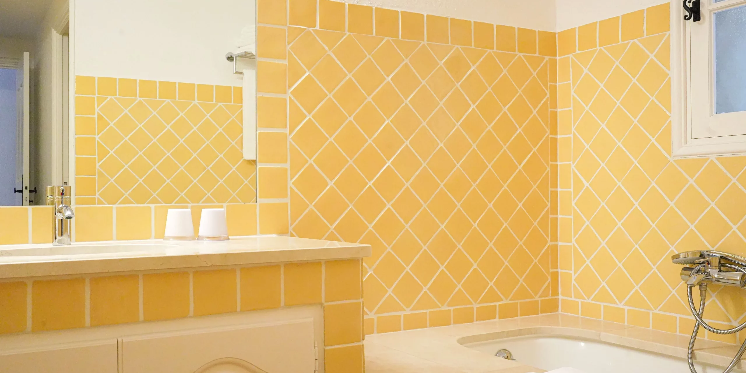 With a large bathroom including double sinks, a bathtub, a separate shower, and a toilet with a bidet, these rooms offer exceptional comfort and sophistication for your stay at Hôtel La Figuière.